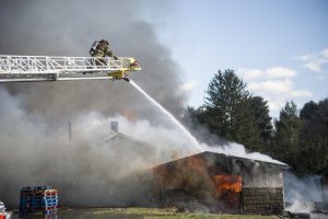 More than 14 fire departments were called to battle a blaze at a Redstone Township business and residence on National Pike Road Monday afternoon.About one mile of road was closed off while firefighters worked to extinguish the fire at Andy JohnsonÄ¢¹½ÊÓÆµ Tires, which is attached to a residence, ...
