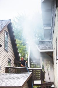 No one was injured in a small apartment fire over Parks Casino in Uniontown Monday afternoon.Uniontown Mayor Ed Fike, who owns the building and lives on the third floor, stood outside on Connellsville Street watching as fire crews from Uniontown and Hopwood worked to remove debris and use fans ...