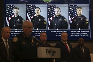 A man armed with 1,800 rounds of ammunition, a grenade and other explosives in his car unleashed a "murderous barrage of fire” as he ambushed officers who were investigating a routine crash, killing one and wounding two before a fourth stopped him and thwarted what authorities described as ...