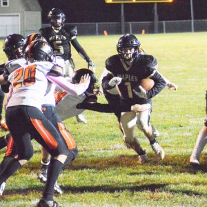 Landan Stevenson rushed for 214 yards and scored five touchdowns as Mapletown out-scored visiting Bentworth, 40-29, in a Tri-County South Conference clash Friday night.Stevenson, who carried the ball 32 times, had touchdown runs of 8, 1 and 35 yards. The sophomore also scored on a 22-yard punt ...
