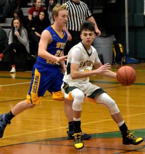 CONNELLSVILLE — West Greene held Geibel Catholic in check throughout the first half of Tuesday night's Section 2-A game, but the Gators' shots started to fall in the second half en route to a 67-54 win.The Gators earned their first section win of the season.Cole Kendall did most of the ...