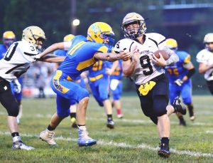 ROGERSVILLE — Mother Nature threw everything she could at the Mapletown and West Greene football teams Friday night with monsoon-like rains, thunder and lightning.The Maples were able to battle the elements to capture their first Tri-County South Conference win of the season with a 15-6 ...