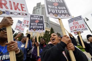 DETROIT (AP) — Workers at Detroit's three casinos went on strike Tuesday, the latest major labor dispute in Michigan and one that follows a partial walkout at auto companies.Unions represent 3,700 people, including dealers, cleaning staff, valets and food staff. The casinos — MGM Grand ...