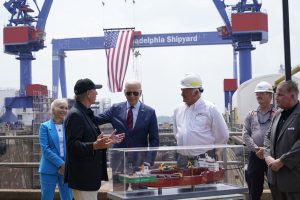 PHILADELPHIA (AP) — Flanked by cranes and shipyard workers, <a href="https://apnews.com/hub/joe-biden">President Joe Biden</a> made the pitch Thursday that unions will be building America's renewable energy future — a courtship of organized labor at a moment when ...
