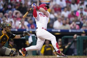 PHILADELPHIA (AP) — Bryce Harper ended the longest homerless streak of his major league career in the second game, and the Philadelphia Phillies swept a doubleheader from the San Diego Padres 6-4 and 9-4 on Saturday.Harper connected on a curveball from left-hander Ryan Weathers (1-6), tying ...