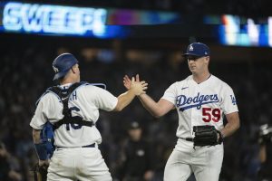 LOS ANGELES (AP) — The Dodgers ended the first half of the season with a bang.<a href="https://www.mlb.com/gameday/angels-vs-dodgers/2023/07/08/717437/final/wrap">All-Star Mookie Betts hit his 10th leadoff homer</a> — tying the most in the first half in major ...