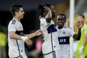 LOS ANGELES (AP) — Defender Ryan Hollingshead and Golden Boot Award-winner Dénis Bouanga both scored goals in each half and Los Angeles FC began defense of its title with a 5-2 victory over the Vancouver Whitecaps in an MLS playoff opener on Saturday night.LAFC (15-10-10), the third seed in ...