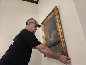 The print of George Washington – mounted atop a horse with a sword extended from his right hand during the Revolutionary War battle in Trenton, N.J. – ...