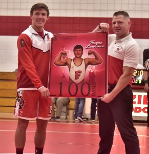 FrazierĢƵ Thayne Lawrence added another accolade to his already stacked resume on Wednesday night in front of a home crowd at John DiVirgilio Field House: Career win No. 100.The senior and Lehigh University recruit pinned Mount PleasantĢƵ Jake Kramer in 1:58 in the 182-pound weight class ...