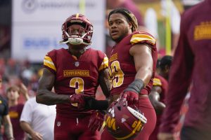 Hurts throws for 4 TDs on injured knee to help the Eagles beat the Commanders and improve to 7-1