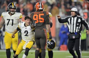 PITTSBURGH — On Thursday night, Mason Rudolph threw four interceptions in the Steelers’ 21-7 loss in Cleveland.Very late in the game he became involved in a tussle that ended with Browns pass-rushing star Myles Garrett ripping off RudolphĢƵ helmet and crashing it down upon his ...