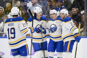 TORONTO (AP) — Alex Tuch scored twice and the Buffalo Sabres overcame Toronto star Auston Matthews' third hat trick of the season to beat the Maple Leafs 6-4 on Saturday night.JJ Peterka had a goal and an assist, Tage Thompson, Jeff Skinner and Jordan Greenway also scored and Devon Levi made ...