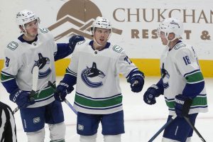 SAN JOSE, Calif. (AP) — Quinn Hughes had a goal and four assists, eight players scored and the Vancouver Canucks beat the San Jose Sharks 10-1 on Thursday for their fifth win in six games.Brock Boeser had two goals and an assist, Anthony Beauvillier also scored twice in his 500th NHL game, ...