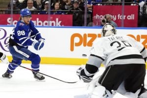 Cam Talbot made 30 saves as the Los Angeles Kings beat Toronto 4-1 on Tuesday night in a game in which Maple Leafs winger William Nylander extended his season-opening point streak to a franchise record nine games.Adrian Kempe, Phillip Danault, Arthur Kaliyev and Andreas Englund scored for the ...