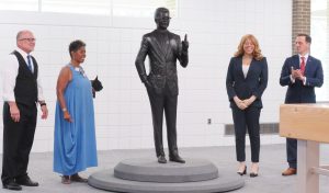 The bronze statue, sculpted by New York-based artist Vinnie Bagwell, is a life-size figure of Lawson, standing with his ...