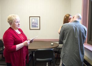 “We are gathered here...’’Reciting those well-known words, Toni Petrus began performing a wedding ceremony Monday for Aaron Mann, 37, of Hiller, and Amanda Dwire, 28, of Point Marion, in a quiet room in the register of wills office at the Fayette County Courthouse in Uniontown.The bride ...