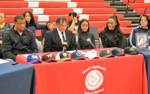 Rodney Gallagher sat at a table with his family inside the Laurel Highlands High School gymnasium on Wednesday afternoon and utter the words, “I will continue my academic and athletic career at ...”Gallagher then paused to reach down below the table and put on a WVU cap while his family ...