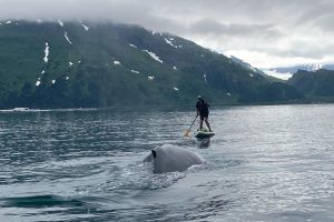 ANCHORAGE, Alaska (AP) — An Alaska man on a paddleboard escaped a close encounter with a humpback whale, not even getting wet during a tense few seconds caught on camera by friends and family as the giant creature surfaced right in front of him then glided under his board.“ItĢƵ just so ...