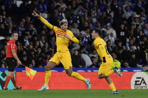 BARCELONA, Spain (AP) — Uruguay defender Ronald Araújo scored deep in stoppage time to snatch a 1-0 win for Barcelona at Real Sociedad, while Girona leads the Spanish league after beating Osasuna 4-2 on Saturday.Araújo charged forward to join the attack in the dying moments in San Sebastian ...