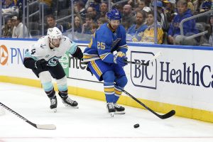 ST. LOUIS (AP) — Robert Thomas scored and Jordan Binnington stopped all three shots in the shootout, lifting St. Louis to a 2-1 victory over the Seattle Kraken in the Blues' home opener on Saturday night.Jordan Kyrou scored for St. Louis and Binnington had 28 saves in regulation and two in ...