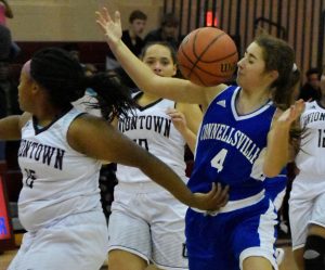 <strong>Connellsville 57, Uniontown 26 —</strong> The Connellsville girls built a lead in the first quarter Monday night and the Lady Falcons maintained the advantage for the remainder of the Section 3-AAAAA game for a 57-26 victory at Uniontown.The Lady Falcons ...