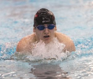 The Mustangs and the Red Raiders battled in several races, and Brandon Thomas added his name to the record books again Monday night as Laurel Highlands edged visiting Uniontown in a non-section swimming meet, 94-86.Thomas broke his own mark in the 100 butterfly in the home season finale with ...
