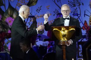 WASHINGTON (AP) — The White House turned down the pizazz for Wednesday's state dinner, but more than 300 guests from politics, business, government and beyond turned out to celebrate close U.S. ties to ally Australia while striking a measured tone in a time of <a ...